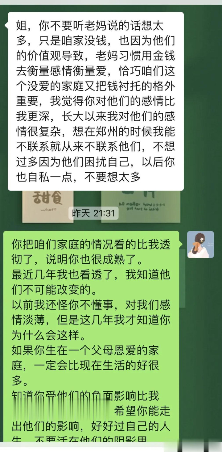 我和妹妹说了,和我妈吵架的事,晚上妹妹安慰我,看到妹妹安慰我的话,我又一次泣不成声。