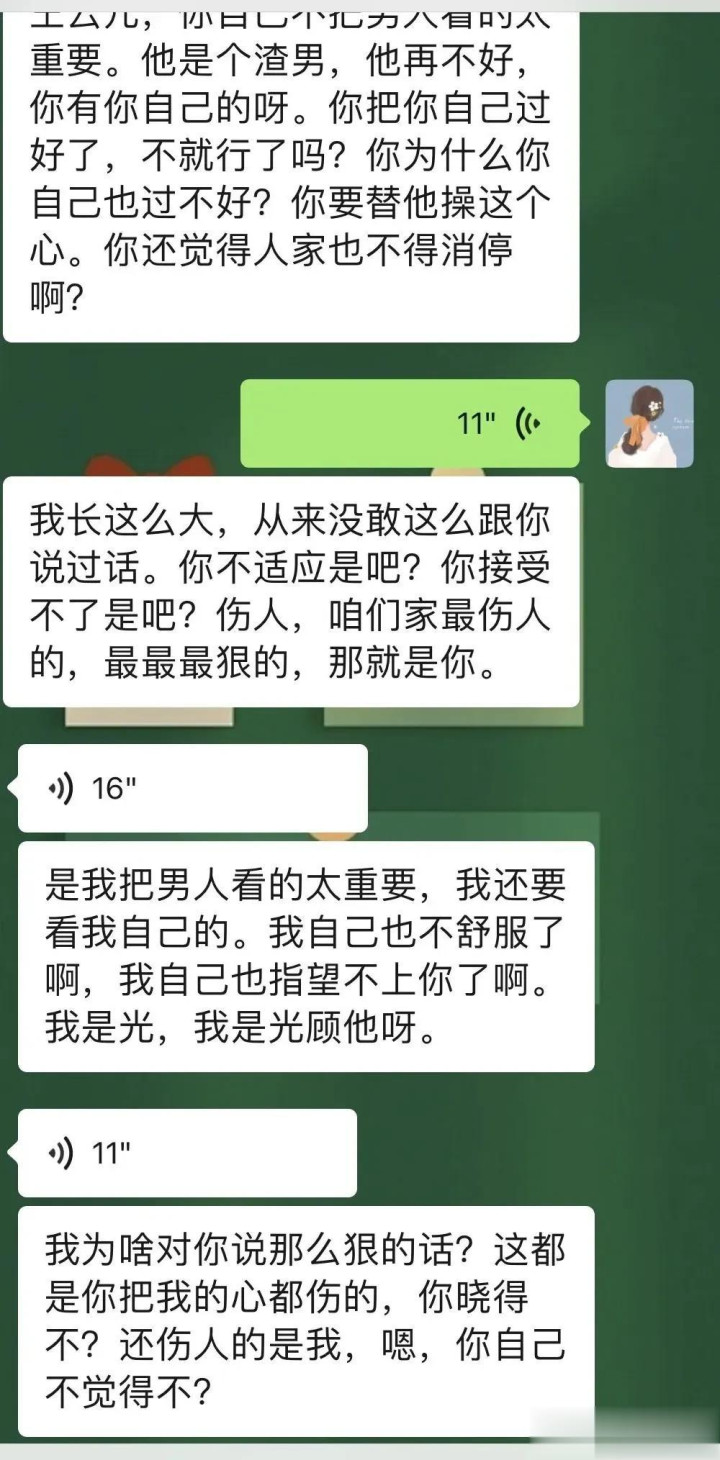 她在我身上惯用的情感和道德绑架的招数,这次不管用了,就是在伤她的心,说养我这个女儿没什么用。